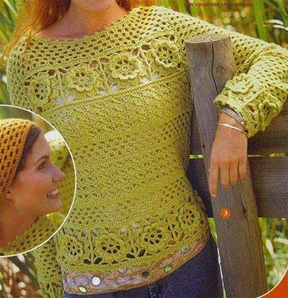 Yeşil yazlık kadın örgü bluz